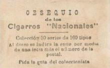 | DESCRIPTION: Part of a 1,000 card issue, these cards were inserted into "Nacionales" brand cigars. There are 10 groups of 100 cards numbered 1 to 100. Each group's numbering is prefaced with a letter, A through J. Other topics include actors, nudes, bathing beauties, etc. There is an album that the cards were meant to be pasted into. Baseball players are all prefaced with the letter "C" and number consecutively from 21 to 60. Printed on photographic stock, they are similar to the Aguilitas Segundas (many of the images are the same) but with black borders. The names and numbers are on the front of the cards in a handwritten script. 10 cards have the pictures horizontally, which seems to add to their eye appeal. They are cards C-36 to C-40 and C-56 to C-60. The set features 2 cards of umpires and 1 card of a mascot (possibly a batboy). Cards C-15 and C-19 also feature baseball players but they are amateurs and not considered part of the set. It is possible the cards were distributed over more than one year. Except for American Negro Leaguers Andy Cooper and Red Ryan, the set features only Cuban players. One of the more interesting cards features legendary Cuban hurler José Méndez whose nickname was "El Diamante Negro" which translates to "The Black Diamond". His card reads "Mendez, El Diamante Negro". |
