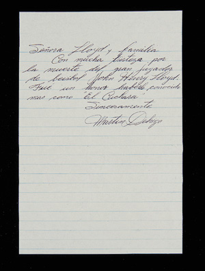 Letter To Pop Lloyd's wife after
