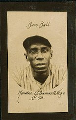 | DESCRIPTION: Part of a 1,000 card issue, these cards were inserted into "Nacionales" brand cigars. There are 10 groups of 100 cards numbered 1 to 100. Each group's numbering is prefaced with a letter, A through J. Other topics include actors, nudes, bathing beauties, etc. There is an album that the cards were meant to be pasted into. Baseball players are all prefaced with the letter "C" and number consecutively from 21 to 60. Printed on photographic stock, they are similar to the Aguilitas Segundas (many of the images are the same) but with black borders. The names and numbers are on the front of the cards in a handwritten script. 10 cards have the pictures horizontally, which seems to add to their eye appeal. They are cards C-36 to C-40 and C-56 to C-60. The set features 2 cards of umpires and 1 card of a mascot (possibly a batboy). Cards C-15 and C-19 also feature baseball players but they are amateurs and not considered part of the set. It is possible the cards were distributed over more than one year. Except for American Negro Leaguers Andy Cooper and Red Ryan, the set features only Cuban players. One of the more interesting cards features legendary Cuban hurler José Méndez whose nickname was "El Diamante Negro" which translates to "The Black Diamond". His card reads "Mendez, El Diamante Negro". |